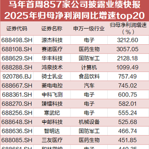 马年首周857家公司披露业绩快报,4家净利增速超10倍