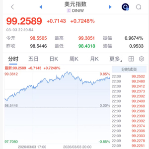 3月3日晚间,美元指数大涨约0.7%,有望创下自去年4月以来的最强连续表现。随着交易员下调对降息的预期,10年期美债收益率上升7个基点,达到三周以来的最高水平。