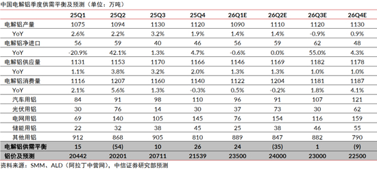 参照最新外发的《能源与材料产业大宗商品季度展望(26Q1)—避险情绪与活跃交易催生商品溢价》(2026年2月),我们预计电解铝行业一季度将在流动性驱动的价格大幅上涨趋势下维持紧平衡态势,并将在二季度进入显著供需缺口格局,预计26年一/二季度铝价均价为23500 /24000元/吨。中东局势升级,铝产业链供给担忧或持续升温,从而导致铝价上涨超出我们此前预期。叠加处于历史新高的铜铝比以及板块估值差异,我们持续看好铝价以及板块估值抬升前景。