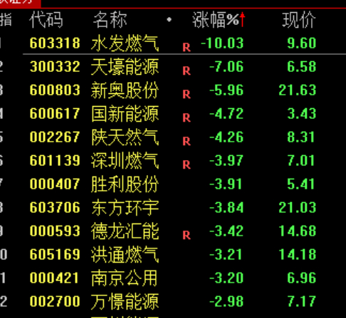 油气股午后冲高回落,水发燃气尾盘跌停。