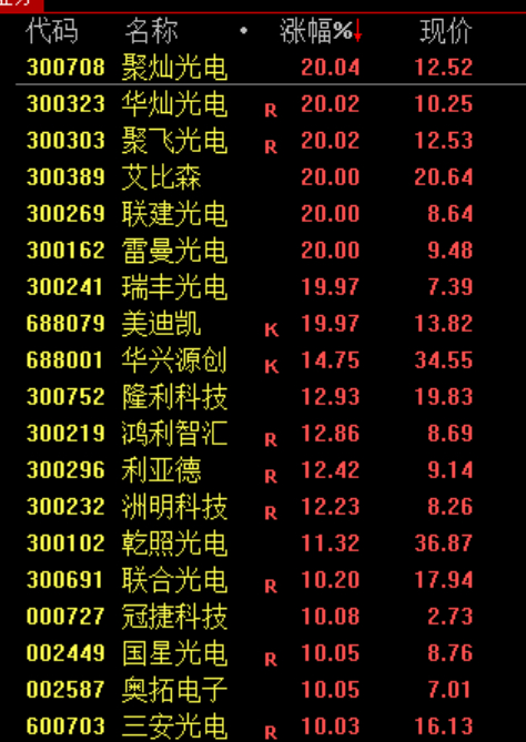 MicroLED概念股爆发,亚世光电华灿光电、国星光电等20余股涨停。