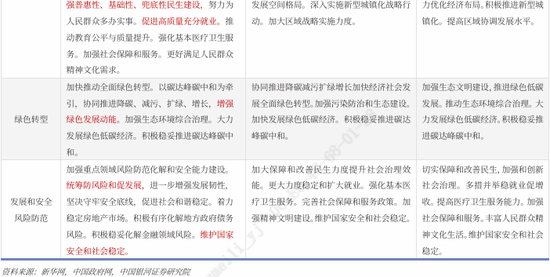 风险防范与国家安全的位次略有下移。房地产政策继续围绕稳定市场和构建发展新模式展开,同时通过盘活存量住房、优化住房供给结构以及推进“好房子”建设稳定市场预期。地方债方面,通过完善债务管理机制和推进债务重组与置换,有序化解地方政府债务风险。在金融领域强化监管协同,提升金融体系稳定性。此外,当前全球地缘政治格局深刻调整、产业链供应链安全问题日益凸显的背景下,报告继续强调统筹发展与安全,将国家安全能力建设作为政策体系的重要组成部分。