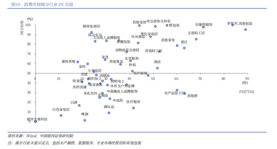 从PE估值来看,31个细分行业估值处于2010年以来50%分位数水平以下,其中,啤酒、百货、非住宅物业、中药饮片、印刷、水产养殖等行业估值位于2010年以来10%分位数水平下方。从PB估值来看,33个细分行业估值处于2010年以来50%分位数水平以下,占全部细分行业总数的55%。其中,白色家电、医药流通、小家电、医疗器械等行业估值均位于2010年以来10%分位数水平下方。