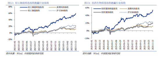 自2024年“924”行情以来,政策焦点和市场叙事高度集中于科技创新、高端制造、能源转型等成长领域,这些板块在2025年领涨并创造了显著的超额收益,尽管消费风格指数行情同样迎来反弹,但整体未取得明显的超额收益,消费行业内部景气度明显分化,消费风格指数反弹缺乏全面性,少数高景气行业的上涨,被更多低景气行业的疲软所抵消。