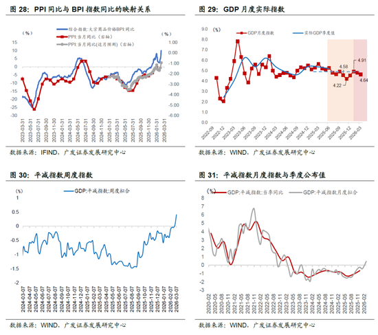 平减指数在基数与新涨价的共振下,预计3月同比转正至0.46%(2026年1月、2月为-0.44%、-0.10%),时隔37个月重新转正(自2023年3月以来),预计一季度平减指数回到0附近。