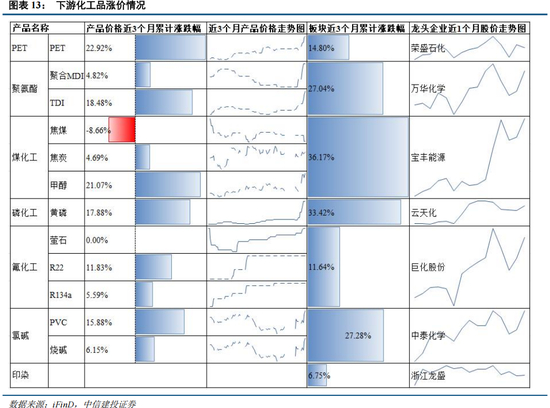 最后成本端上行将推动通胀传导至能化全链条。此前能化下游细分品种已率先呈现涨价迹象,TDI、染料等品种受行业供需格局改善影响出现零星涨价,反映出下游需求边际修复;而当前油气上游价格的大幅上行,将从成本端向基础化工、精细化工全产业链逐步传导,从 PX、乙烯等基础化工原料,到涂料、化纤、聚氨酯等终端制品,涨价逻辑将逐步兑现,能化板块各细分品种的成本端支撑显著增强,盈利修复空间有望持续打开。