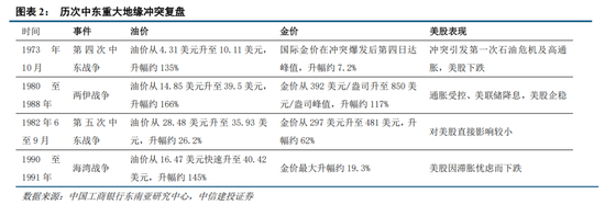 复盘来看,历次中东重大冲突几乎都会导致短期内全球主要股市大跌,油气资源大涨。油价平均涨幅超过100%、金价平均涨幅超过50%。核心传导逻辑为:冲突升级直接引发全球能源供应不确定性加剧,叠加避险情绪快速升温,推动资金从股票等风险资产向黄金、美元等避险资产迁移,同时流动性收缩也会进一步放大市场波动。