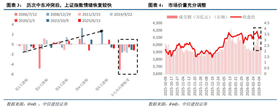 近期美以对伊朗的军事打击引发全球股市震荡,投资者目前对于战争的后续影响分歧较大,总体来看,我们认为战争对大盘扰动较小,但其对市场的结构性影响值得关注。复盘近20年中东7次重大冲突,A股情绪杀跌周期普遍偏短,而当前市场调整充分,中长期趋势不受短期地缘冲突扰动。然而,本次冲突对能源、化工、航运等产业和全球通胀预期的长期影响值得后续关注,例如推升原油、天然气价格,利好航运企业利润等。政策方面,2026年两会明确“稳中求进、提质增效”的政策取向,宏观政策兼顾财政结构优化与货币传导效率,产业政策聚焦集成电路、生物医药等智能经济领域及碳达峰目标,将逐步引导投资者关注点从地缘冲突转向基本面与政策红利。