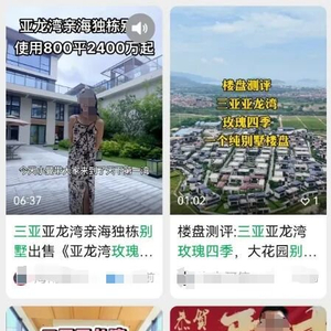近期,在网上搜索“三亚玫瑰四季别墅”,会出现一批自媒体发布的亚龙湾玫瑰谷玫瑰四季项目的销售宣传信息。这些视频无一例外地将该项目冠以“三亚别墅”“独栋别墅”等名义。