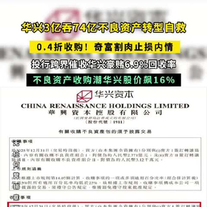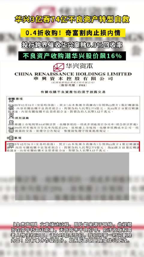 视频 | 华兴3亿吞74亿不良资产转型自救,0.4折收购,奇福割肉止损内情