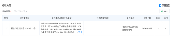 近日,宝宝巴士(福建)网络科技有限公司因发布低俗广告,被福州市仓山区市场监督管理局罚款30万元,没收违法所得3.68元。