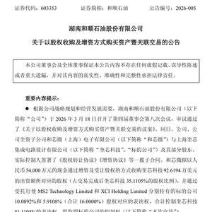 3月18日晚,和顺石油发布公告称,公司全资子公司和芯微拟以5.4亿元现金,通过股权收购及增资方式,收购奎芯科技35.11%股权,并受托行使16%表决权,合计控制奎芯科技51.11%表决权,实现对奎芯科技的控股。本次交易构成关联交易,尚需公司股东会审议通过。
