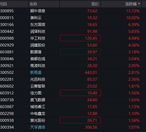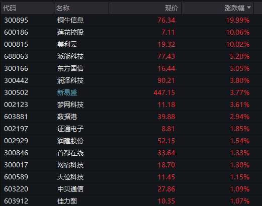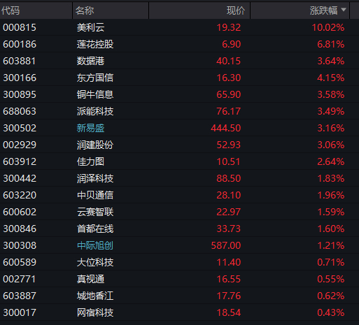 算力租赁概念反复活跃,美利云2连板,贵广网络、铜牛信息、利通电子涨停。