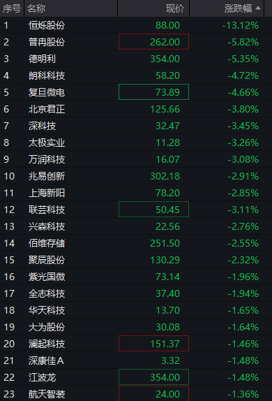 存储芯片概念集体走弱,恒烁股份跌超11%,云汉芯城、德明利、香农芯创、大为股份、江波龙跟跌。