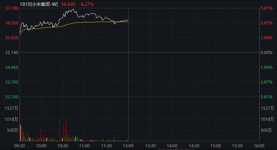 小米逆势涨超4%。