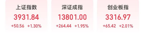 今天,A股延续反弹,上证指数重返3900点。截至收盘,上证指数上涨1.3%,报3931.84点;深证成指上涨1.95%,创业板指上涨2.01%。