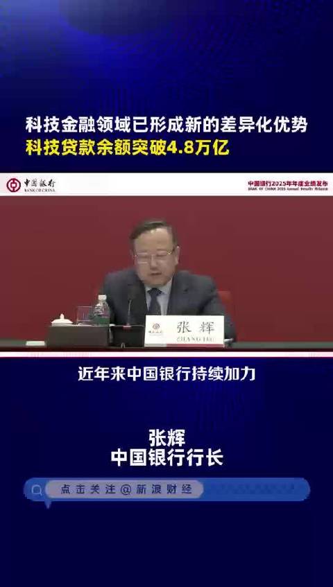 中国银行行长张辉:科技金融领域已形成新的差异化优势,科技贷款余额突破4.8万亿