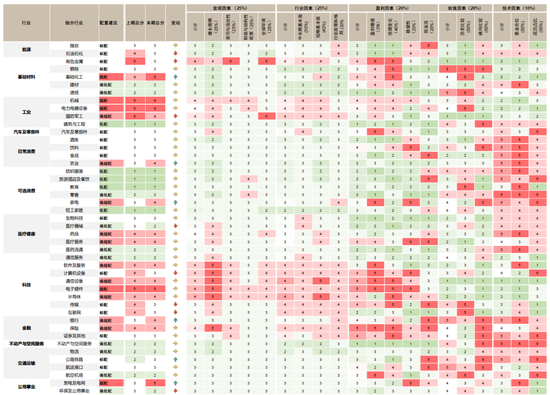 图表1:中金A股行业配置观点及细分小项
