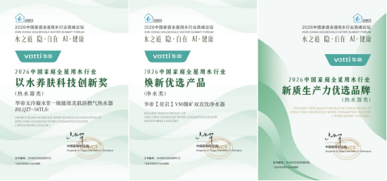 本届活动由中国家用电器协会指导,中国家电网主办,活动期间对行业发展做出突出贡献的企业以及引领行业趋势的标杆产品进行颁奖。高端厨电领导品牌华帝凭借在这一领域的深耕和创新,获评为“2026中国家庭全屋用水行业(热水器类)新质生产力优选品牌”;旗下高端产品“星岩V50微矿双直饮净水器”被评为“2026中国家庭全屋用水行业(净水类)焕新优选产品”,“无冷凝水管一级能效美肌浴燃气热水器JSLQ27-16TL5i”被评为“2026中国家庭全屋用水行业(热水器类)以水养肤科技创新奖”。