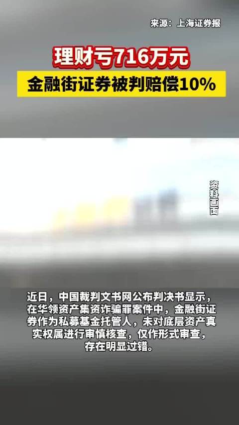 视频 | 理财亏716万元,金融街证券被判赔偿10%