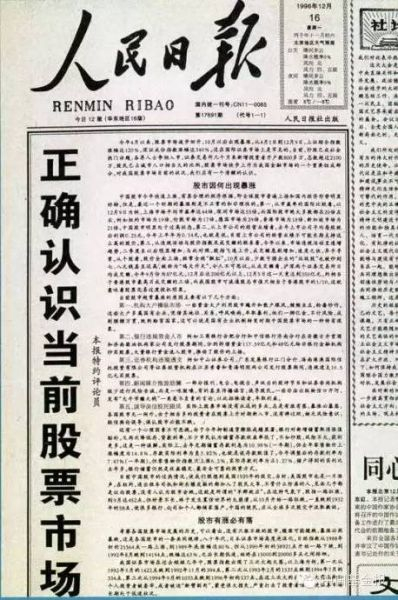 周正庆:这是我亲自主持写的。这篇文章反反复复经过三次推敲,写好后报到国务院。领导一看,写得挺好,有理有据,很能说明问题,就批在《人民日报》发表。《人民日报》又遇到了这个问题,就是以什么名义发表呢?说第一篇是特约评论员,咱还是特约评论员。第一篇《人民日报》特约评论员文章发表以后,那会儿范敬宜当主编,受到市场股民的严重攻击,打电话骂他。因为那是在过热的时候,你发表一篇制止过热。他现在一瞧,这是个利好消息啊,所以马上头版头条发表这篇文章。