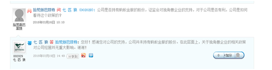 七匹狼表示,公司并未持有蚂蚁金服的股份。在此层面上,关于独角兽企业的相关政策对公司经营并无重大影响。
