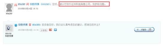 如在深交所互动易上,这位投资者建议上市公司华数传媒尽快外延并购独角兽公司,如参股优酷。