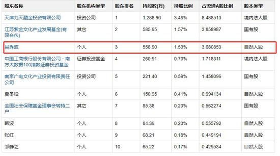 目前为止,吴秀波幸福蓝海的持股比例大1.5%,为第三大流通股东。