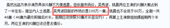 早在4年前,据《徐州日报》报道,吴秀波电视剧单集片酬的市场价已经到了100万……