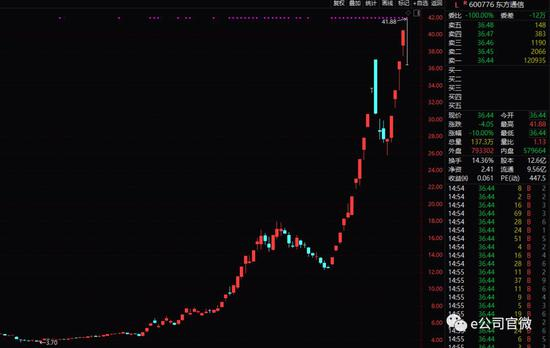 从2018年10月19日最低的3.7元/股,到今年2月26日触及37元/股,东方通信的10倍涨幅之路只用了86个交易日。其后,东方通信经过3个交易日的短暂调整,以连续4个交易日涨停的姿态再创新高,堪称此轮行情当之无愧的龙头。市场炒作东方通信涉及的概念是5G,然而公司的5G光环虚虚实实,难以说清。3月8日,东方通信跌停,后续走势有待观察。