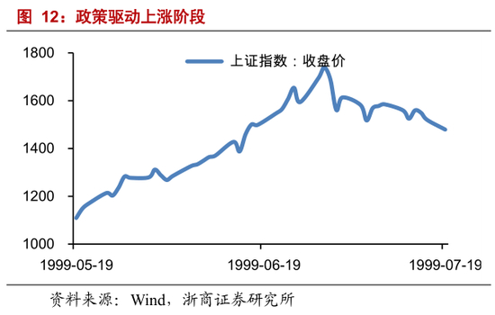 1999 年二季度,政策利好持续释放。1999 年 5 月 12 日,国务院批准了,证监会提交的《关于进一步规范和推动证券市场发展的若干政策请示》,政策面开始发力。《环球人物》报道,1999 年 5 月 18 日,证监会向八大证券公司,传达了总理关于股市发展的 8 点意见,包括要求基金入市,降低印花税,允许商业银行为证券融资等;5 月 19 日,上证综指大涨 4.64%。6 月 15 日,《人民日报》发布头版文章,标题为《坚定信心,规范发展》,对股市上涨给予充分肯定;6 月 16 日,上证综指大涨 5.23%。