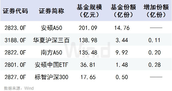 纳入Wind统计的31只专门投资A股市场的港股ETF基金,其总份额已达35.1215亿份,正式突破35亿份关口。其中“华夏沪深三百”、“南方A50”、“安硕中国ETF”9月以来分别增加了1065万份、2000万份、2820万份。