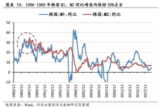 这一时期韩国仍然处于工业化阶段,货币政策整体偏向宽松,增加货币供给刺激实体经济发展的同时,也为股票市场提供了充裕的流动性。1986至1988年间,韩国M1、M2同比增速均保持30%左右,属于历史较高水平。