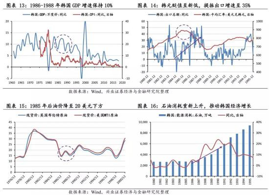 1)第二次石油危机的影响逐渐消退,1985年后油价降至20美元下方,油价不再成为重化工业发展的瓶颈,韩国石油消耗量重新上升,推动经济增长;