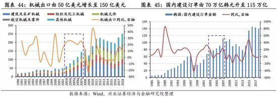 机械:韩国机械出口金额由50亿美元增长至接近150亿美元,每年增速约25%,机械板块实现1100%涨幅。