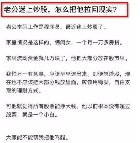 股市不仅“七亏二平一赚”,还有可能让人性情大变,这位老婆的担忧也是人之常情。