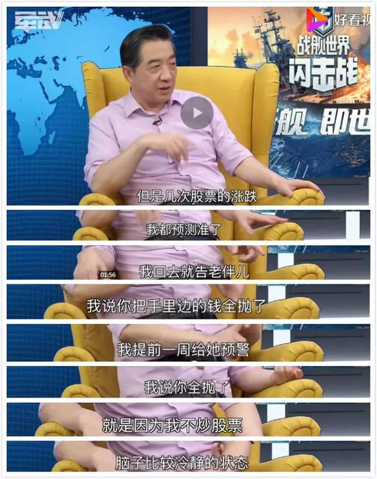 “局座”张召忠说自己不炒股。
