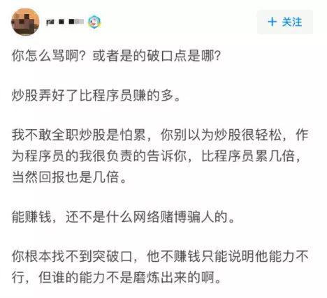 没赚钱就更不开心。“如果没拿这些钱炒股,我本可以XXX,现在我却只能XXX”,“这些亏的钱,都可以拿来买好多XXX”。