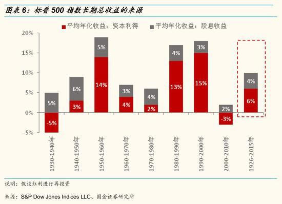 众所周知,股票投资总收益来自两个方面:资本利得与现金分红(确定性收益)。长期来看,现金分红是投资收益的重要来源。1926-2015年,标普500指数总收益的40%来自现金分红,60%来自股价上涨。由此可见现金分红是股票投资长期收益的重要来源。