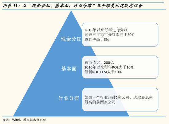 为了避开价值陷阱,我们从“现金分红、基本面和行业分布”三个维度来构建高股息组合。具体筛选指标如下: