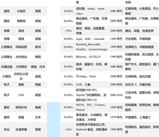 我国消费与周期板块相当于海外市场1980年代及以前,科技板块相当于海外市场21世纪。根据各类板块国内市场相当于海外对标行业时代的数量,半数消费板块的子行业相当于海外对标市场1980年代以前,超过4成周期板块的子行业相当于海外1980年代,近4成防御板块的子行业相当于海外1990年代,8成科技板块的子行业相当于海外2000年以后。