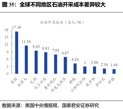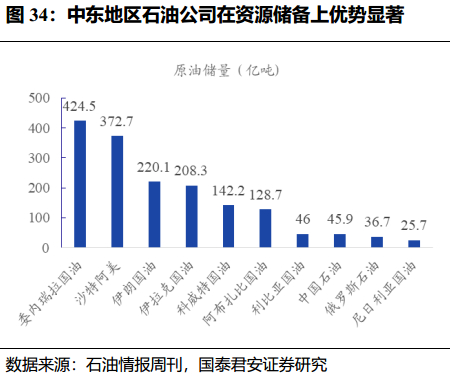 资源优势可以通过公司的资源储量和开采成本判断。如委内瑞拉国家石油公司原油储量超过400亿吨,约为中国石油的近10倍;英国的石油开采成本为17.4美元/桶,约为伊朗的10倍。