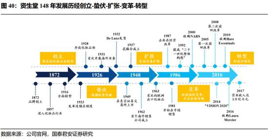 全球化妆品行业集中度较高,集中度提升过程中盈利、估值均有所提升。全球化妆品行业,以美国雅诗兰黛和日本的资生堂、花王为代表的公司极具代表性。目前世界范围来看,行业CR4在40%~70%之间,行业集中度较高,主要原因是在1960~1970年左右,产业链上下游集中度提高以及行业渠道发生了重大变革。在整个行业集中度不断提升过程中,头部公司盈利能力和估值均有所提升。以日本资生堂为例,公司2018年营收678亿,产品销售至全球120多个国家和地区,在全球护肤品市占率排名第五,其发展史对国内化妆品行业具有重要参考意义。