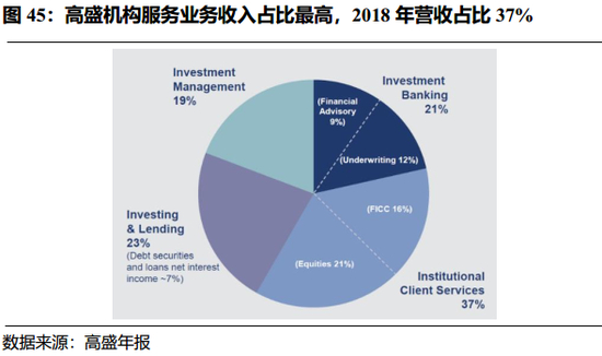 全球投资银行业美国遥遥领先,行业集中度较高,该过程中盈利、估值均有所提升。全球投资银行,以JP Morgan、Morgan Stanley、Citi为代表的美国企业走在全球前列。目前全球范围来看,行业CR4在40%~70%之间,集中度较高,主要原因是1980~1990年间,客户需求发生变化(机构投资者提升)、头部企业综合服务优势不断提升,推动头部企业自我加强,行业集中度不断提升。在此过程中头部公司盈利能力和估值均有所提升。以美国高盛集团为例,公司2018年营收367亿美元,为全球第二大投行,其发展史对国内证券行业具有重要参考意义。