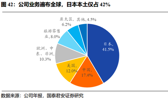 全球化布局,加大研发投入、渠道管理,成就百年老店。公司1931年开始布局海外市场,先后进入中国台湾、美国、意大利、泰国、法国、德国、中国大陆等地。早期日本国内市场繁荣,海外市场没有成为重点(1992年海外营收占比仅为6.4%)。1990年开始,公司加速海外市场扩张,海外营收占比逐年提升,2018年达到46%。目前公司在全球近120个国家和地区销售商品,前三大收入来源国为日本、中国和美国,2018年营收占比分别为41.5%、17.4%和12.0%,全球化布局成果显著。同时公司研发投入、品牌管理力度大,2018年研发投入300亿日元,研发费率达2.7%,位居行业第二(仅次于欧莱雅);渠道方面公司注重管控,布局多元渠道,进行严格的价格管控制度。