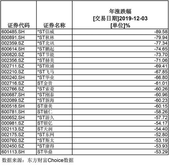 而ST板块中,年内跌幅超过50%的个股有22只,跌幅居前的个股有*ST信威、*ST秋林、*ST北讯等。