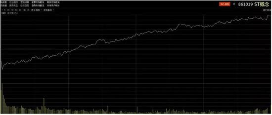 但开盘不久,资金开始如潮水般涌入,ST板块一路走高,涨幅在全部概念板块中位居前列。