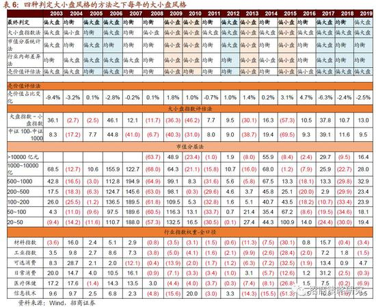 ※ 行业内部差异法:中证800行业指数通常是由行业里面权重股组成,而WIND全A行业指数是有行业里面所有股票组成,那么中证800行业指数和WIND全A指数的回报率差值为正,则是行业内部权重占优,反之则是行业内部小盘股占优,如果大部分行业都是权重占优,则为大盘风格,反之则为小盘风格;