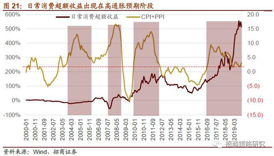 影响通胀预期的因素非常多,高通胀多出现在需求推动的阶段,03-04年,07-08年,10-11年属于需求推动型通胀,而17年的PPI高涨,19年CPI高增,均属于供给推动型通胀,这两种类型的通胀阶段,消费风格均相对占优。