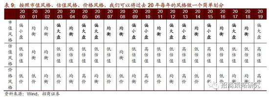 按照市值风格、估值风格、价格风格,我们可以将过去20年每年的风格做一个简单划分,如下图所示: